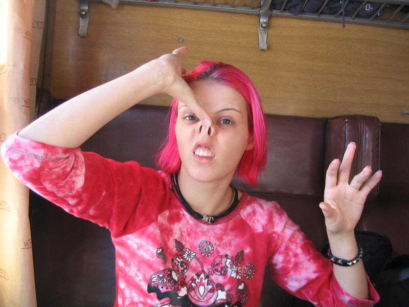 Stupid behaviour: I saw this Romanian Railway Company employee in a railway station dressed up with a window curtain from a wagon.